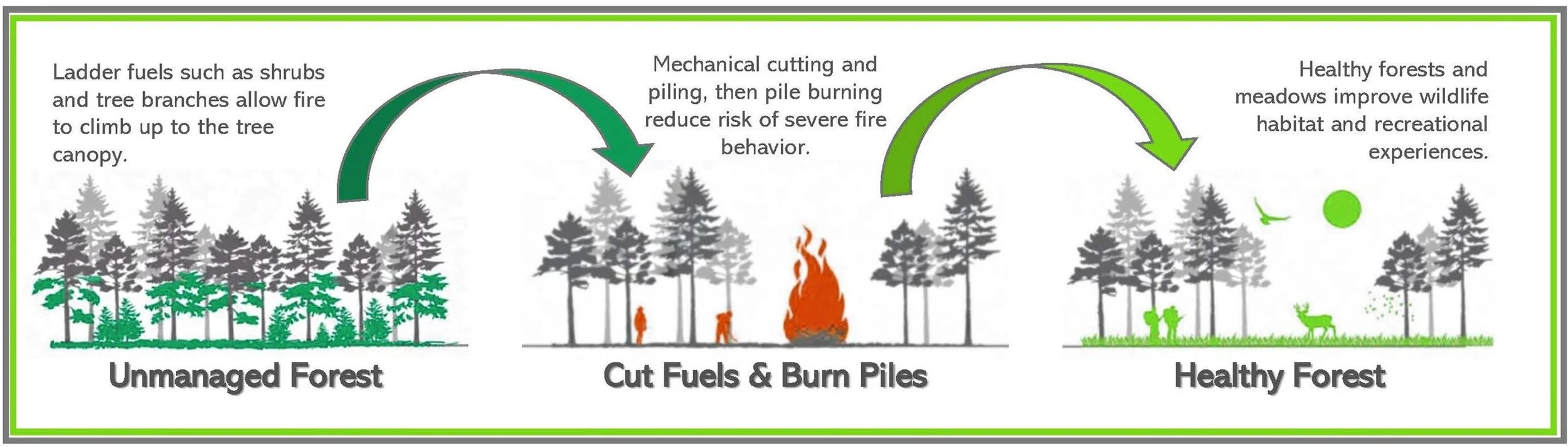 By implementing Forest Restoration plans - which often includes prescribed burning and/or thinning trees and shrubs - we can reduce fuel loads and help our forests return to a more resilient and diverse state.